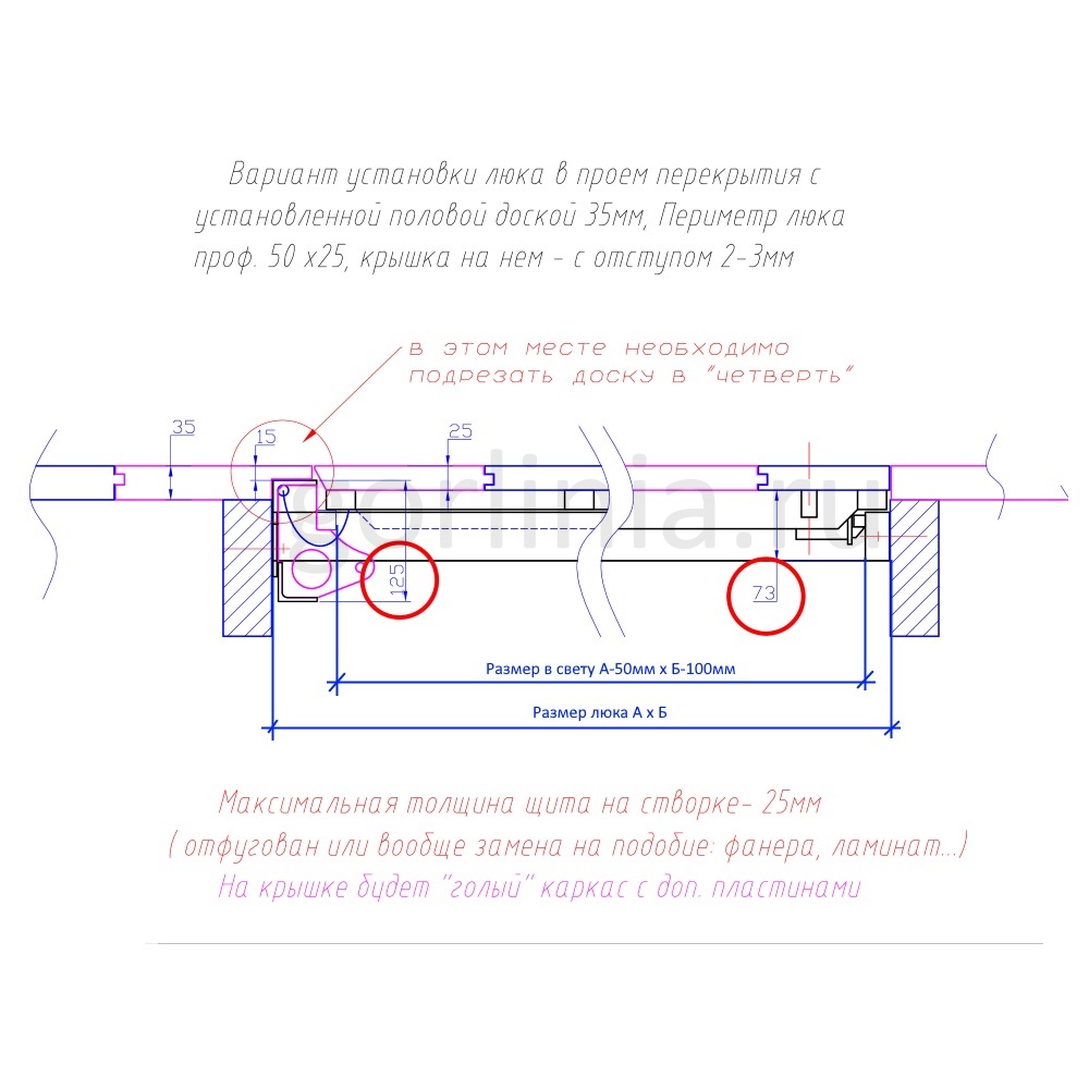- Если люк примыкает к стене, требуется доборный профиль со стороны петли для свободного хода створки.