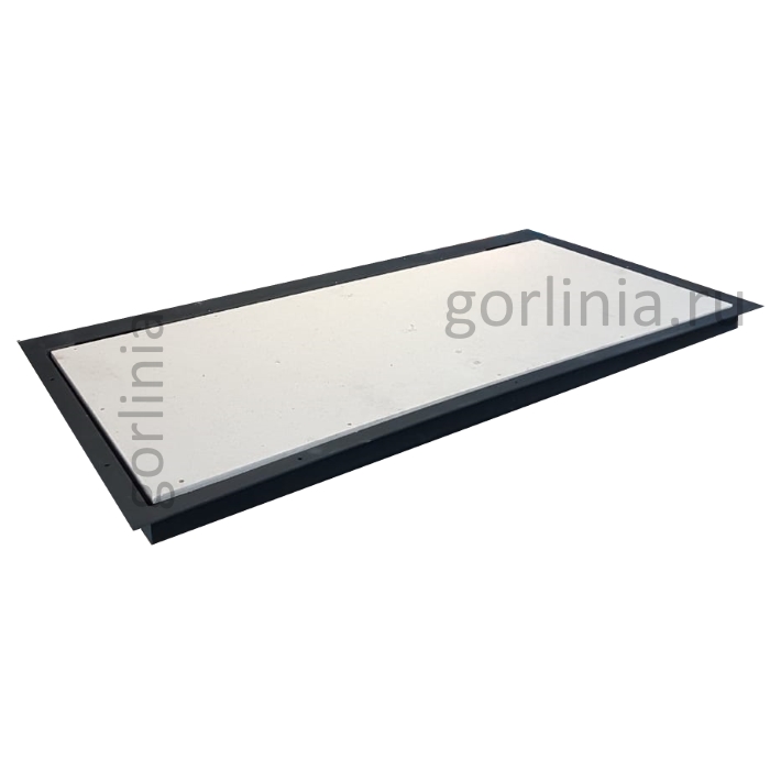 При подготовке напольного отверстия с зазором для посадки рамы 1200х600 обратите внимание на защитные кожухи шарниров и вылет полки наличника 10 мм со стороны петли. Изучите монтажные размеры на схемах в галерее.