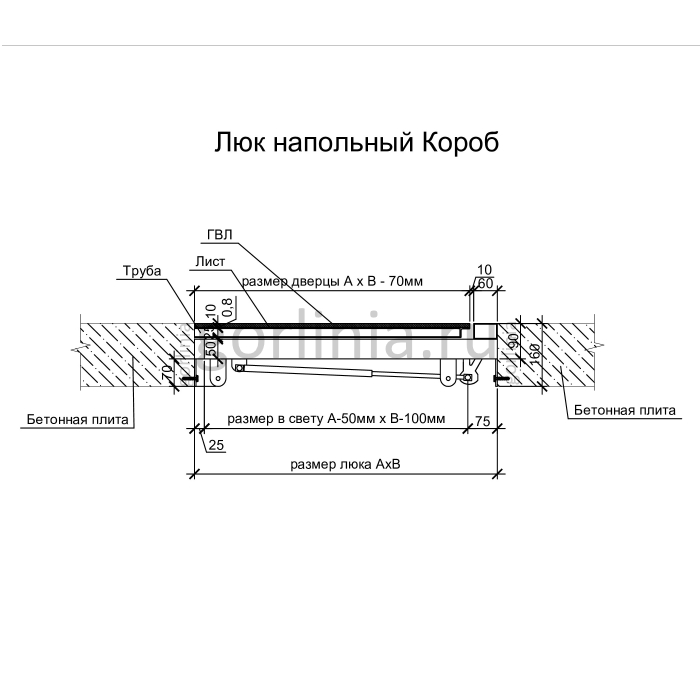 Рама без наличников выставляется в существующем отверстии 100*100 см с допусками, крепится в перекрытии через вертикальные пластины даже когда Ваш ремонт закончен и пол выложен керамогранитом или настелена ламинированная доска.