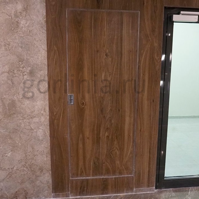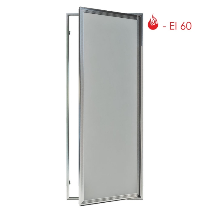 Монтажный размер 600*1600п со скрытой коробкой из алюминиевого профиля глубиной 62 мм. Полотно 552*1152 заполнено гипсоволокнистый лист влагостойкий "Knauf", внутри проложена минеральная вата и подшита ГСП-Н2 с внутренней стороны. По контуру притвора проклеена терморасширяющаяся лента.
